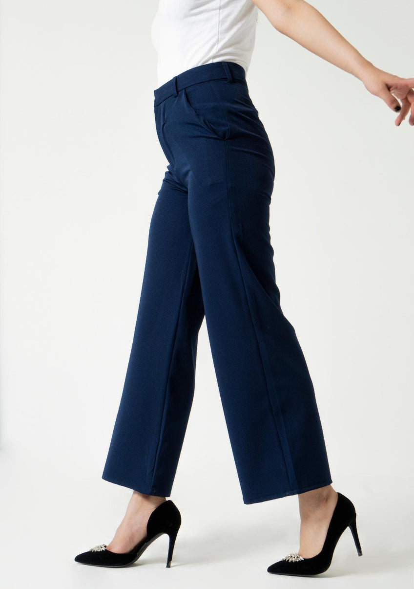 HIGH RISE WIDE LEG NAVY BLUE PANT W POCKET